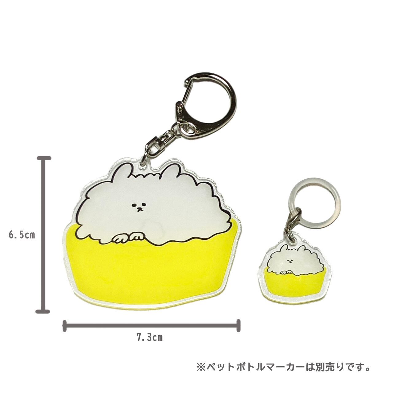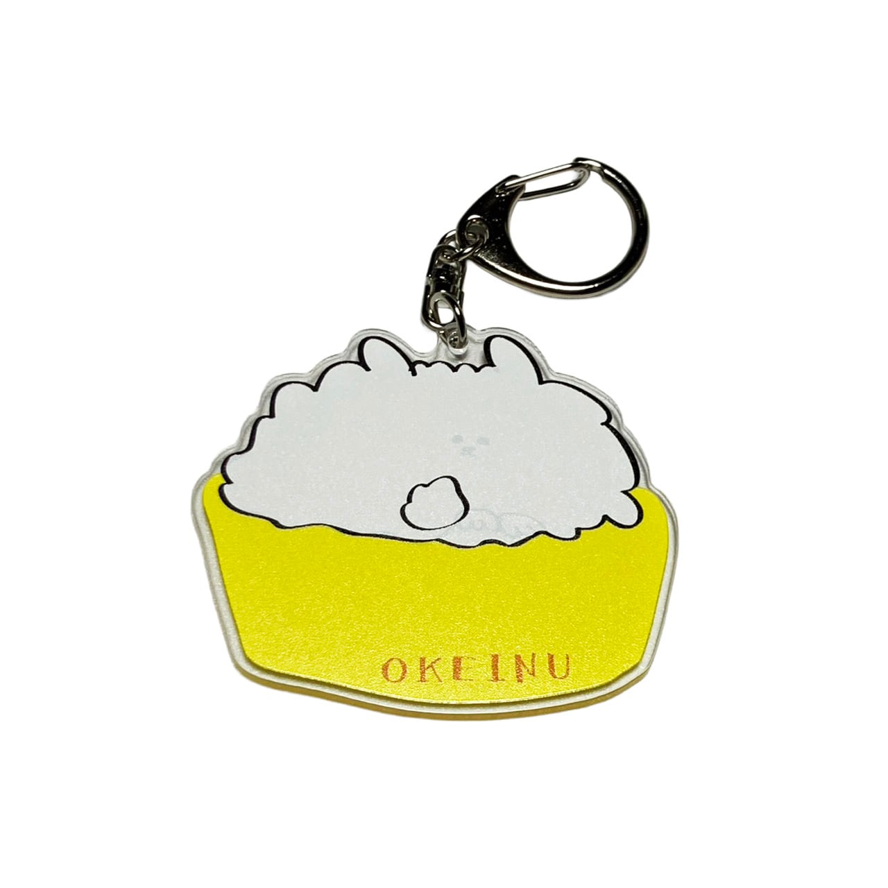 おけいぬがプリントされた大きなサイズのアクリルキーホルダーです。